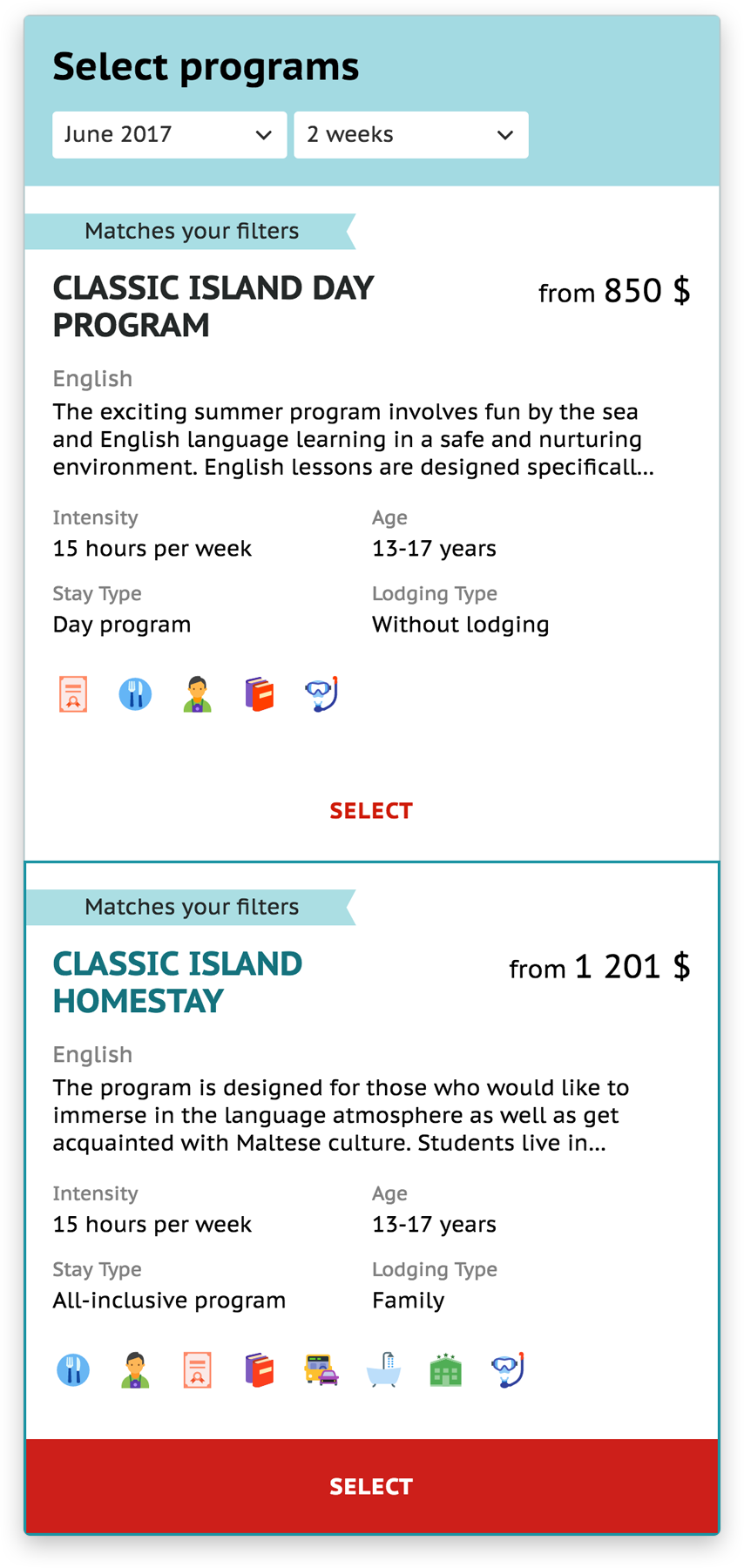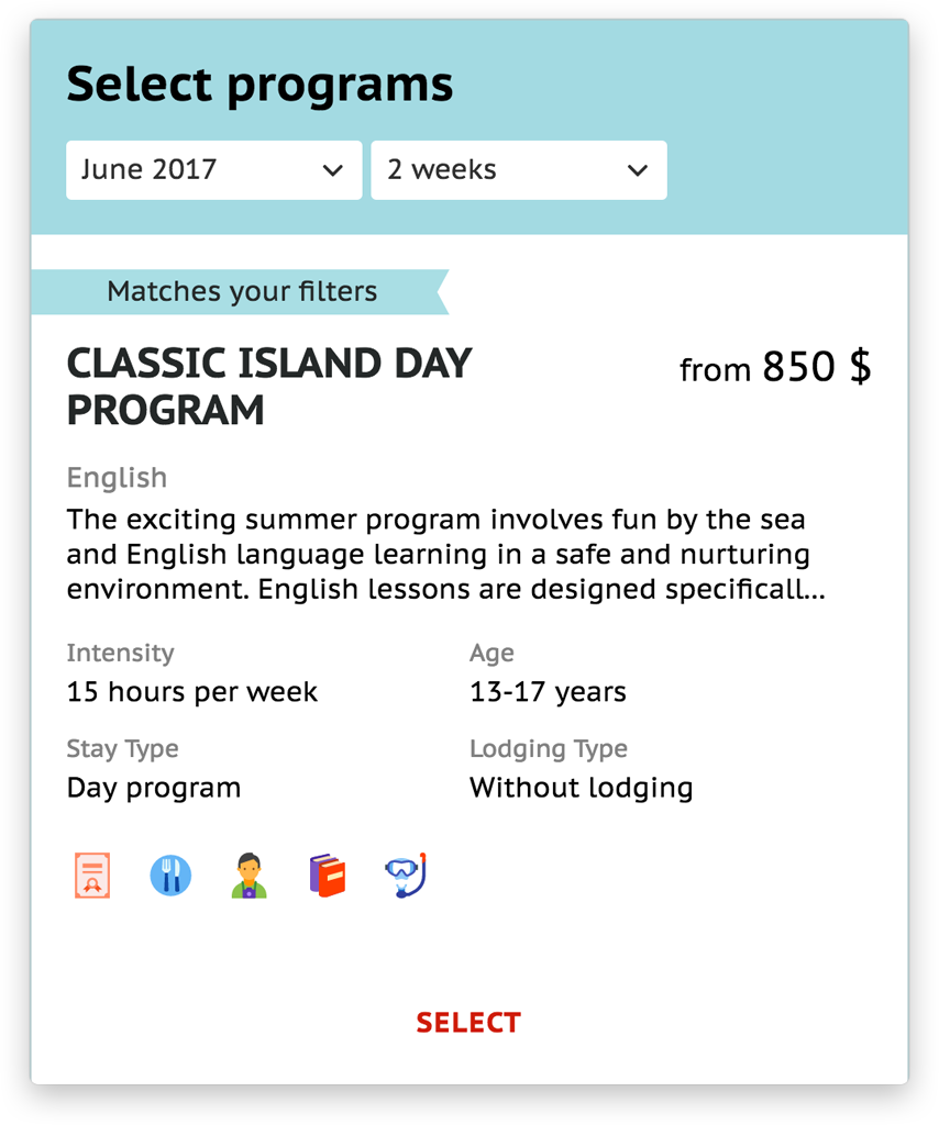 Right now our team discusses with the customer the creation of different landing pages for particular countries and seasons. The main page, the search page and the program page will be reworked and made more user-friendly according to the results of our UX research.