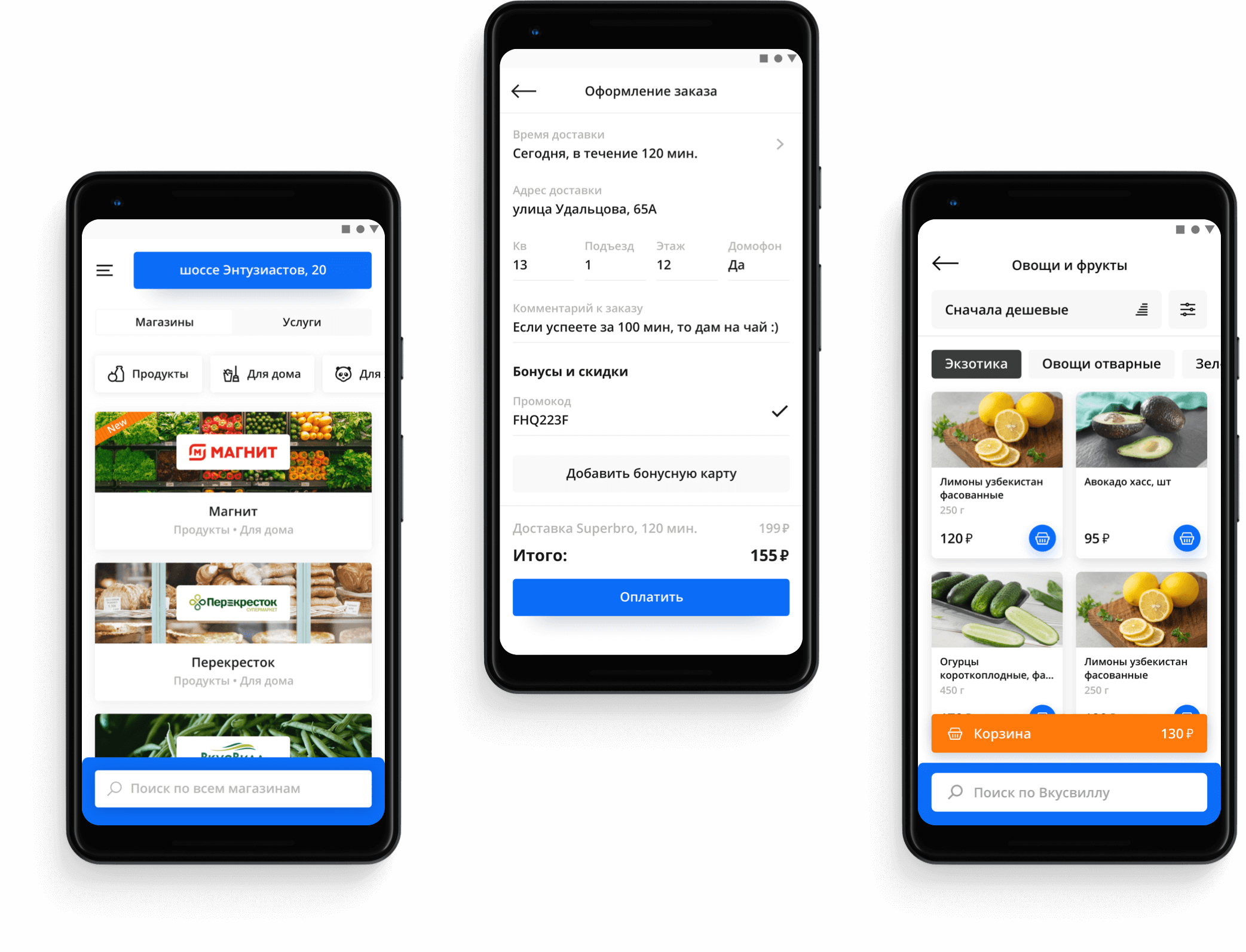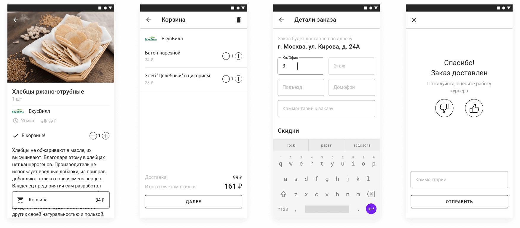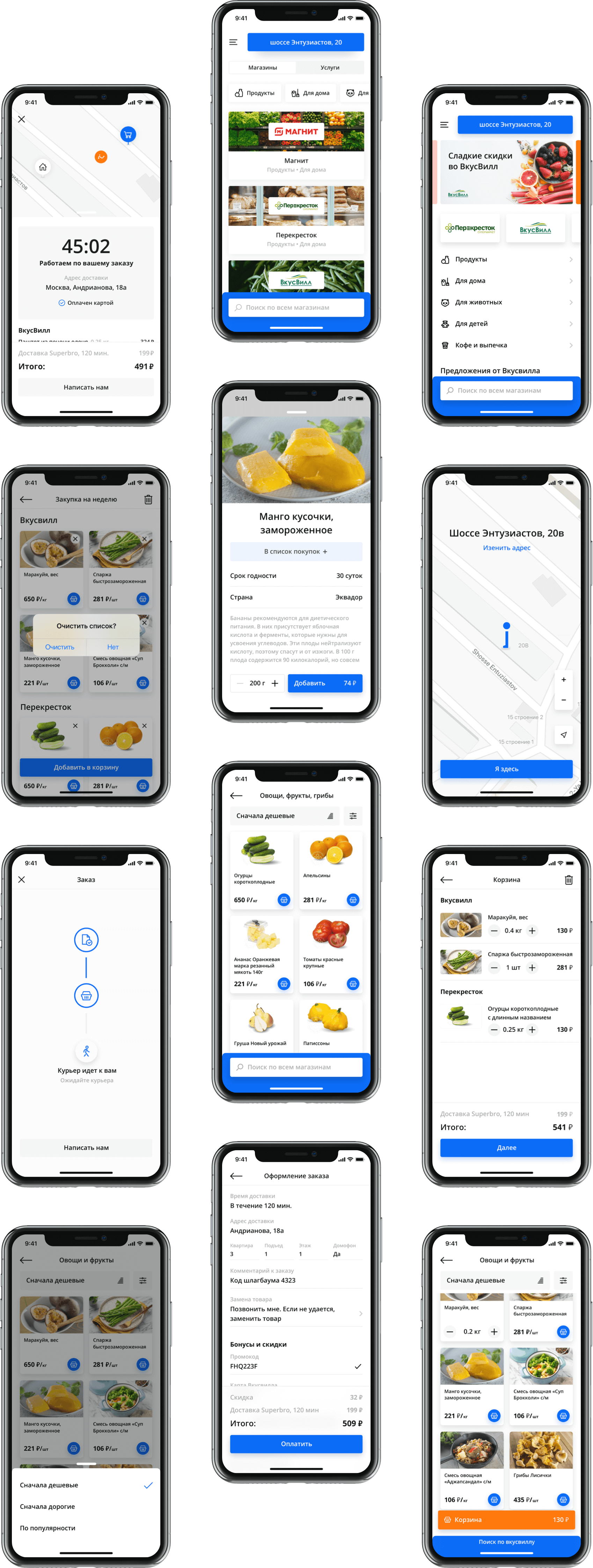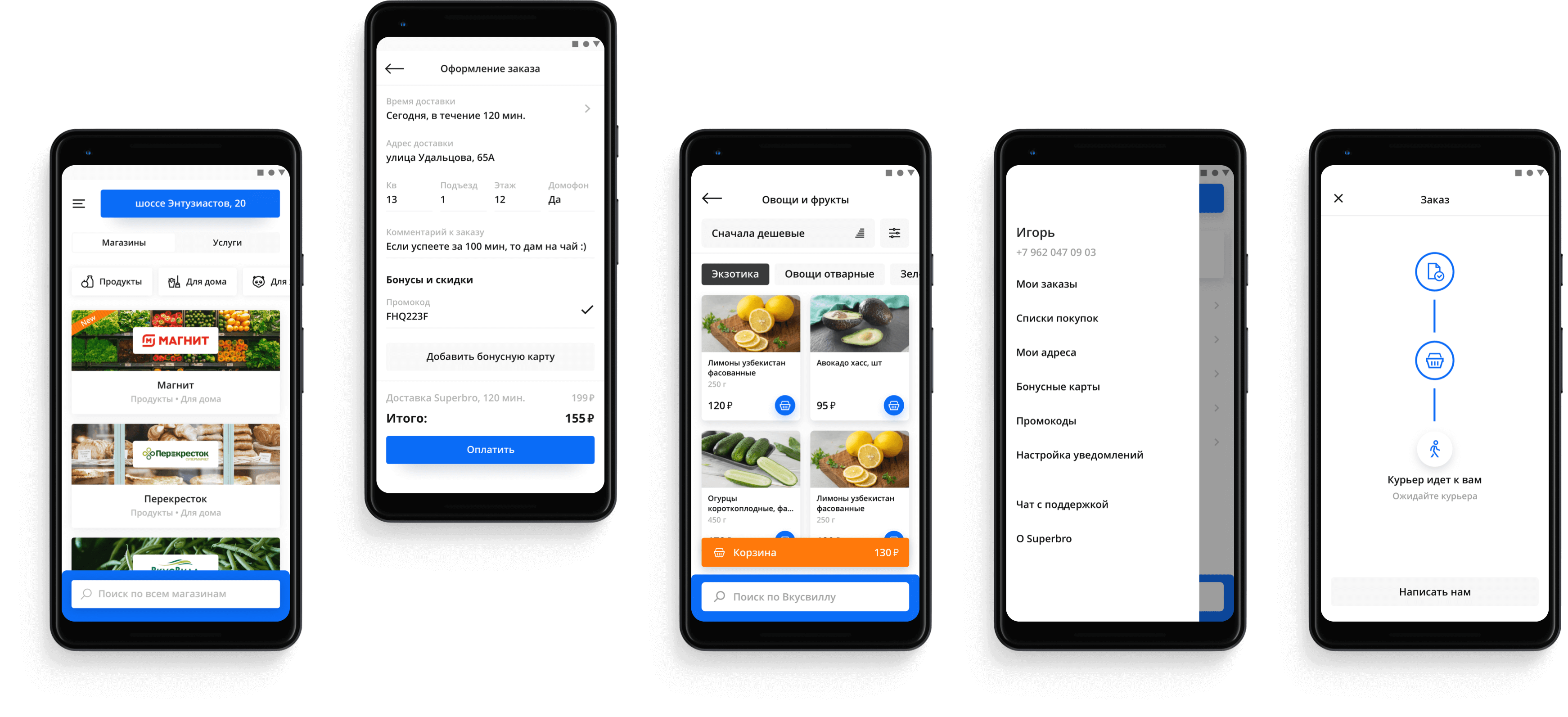 The customer already had trained couriers on staff along with proprietary software for managing orders and efficient route building. We just needed to adapt these existing assets to the new product, make arrangements with the stores, develop the mobile apps and set up marketing and support service.